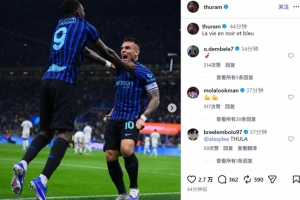 打破8场进球荒!小图拉姆社媒晒同劳塔罗庆祝合照:蓝黑人生